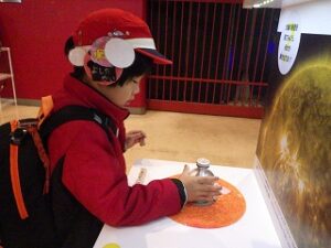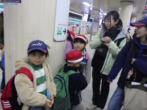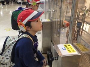 今月はハイキングの予定でしたが、雨のため科学センターに行くことにしました。みんなで地下鉄に乗って移動します。フィールドチャレンジャーでは初めての電車移動ですね。