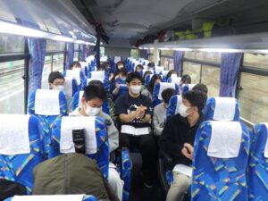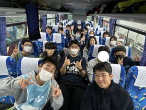 今年度は小学生45人、中高生17人の仲間が集まりました。バス2台に分かれて志賀高原へ出発!