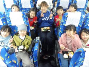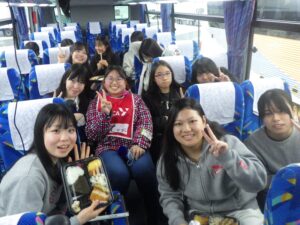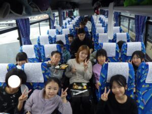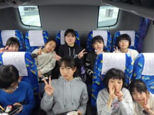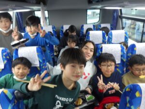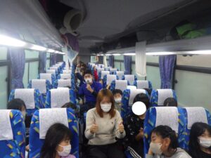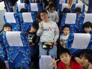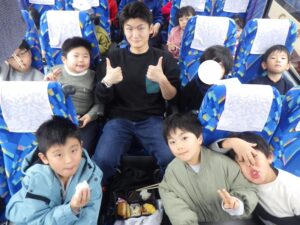 バスの車内では、歌を歌ったり遊びをして過ごします。