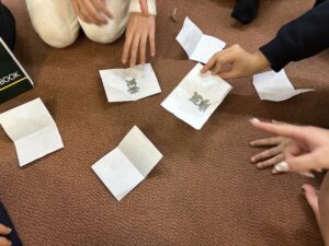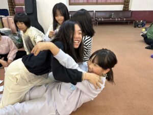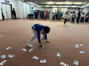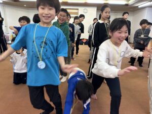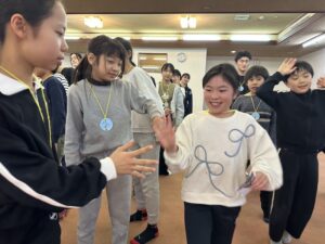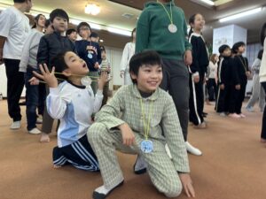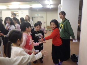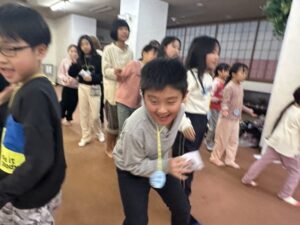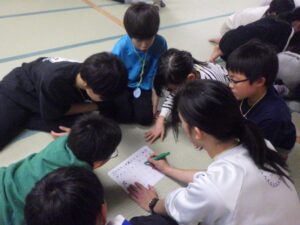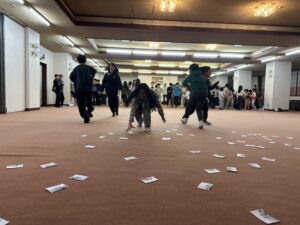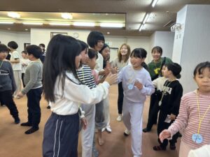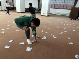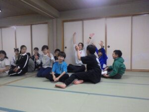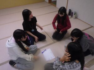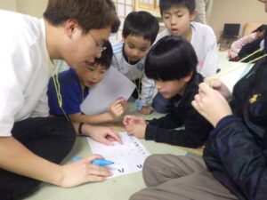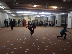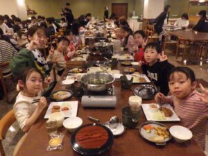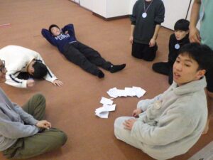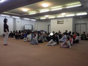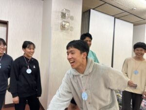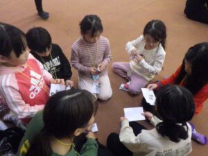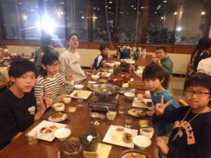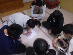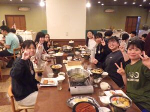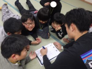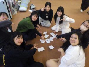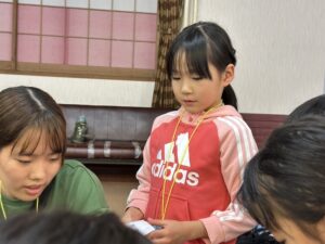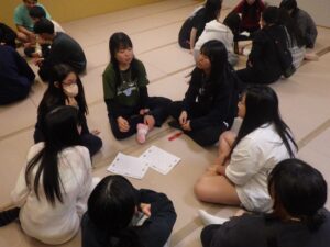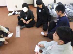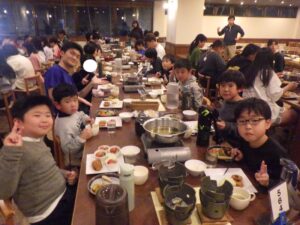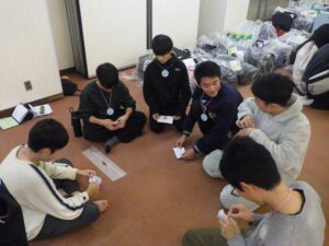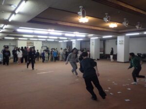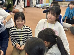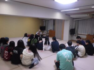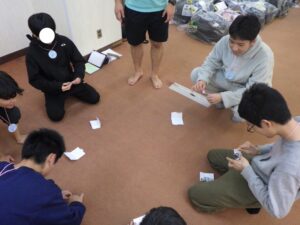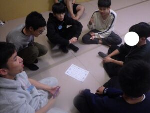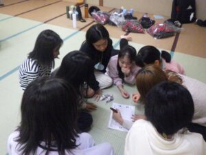 夕食後はナイトプログラム!夜のお楽しみの時間です。前半と後半に分かれて、前半は小学生と中高生別でのプログラムをしました。