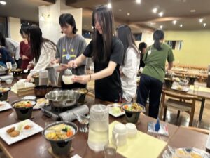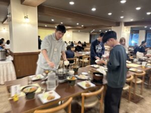 夕食の時間が押していたので、早く食べ始めれるように中高生が全体の配膳をしてくれました!ありがとう!