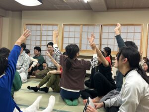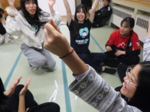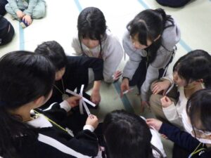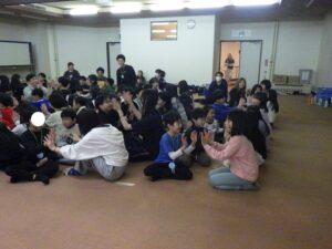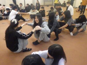 おはようございます!今日の朝の集いは「カヌーリレー」という遊びです。
