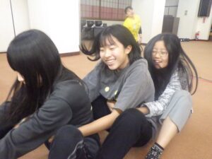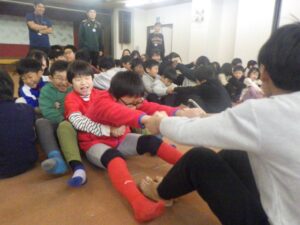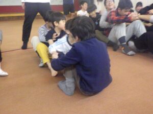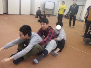 お尻をつけた状態で、お尻と足を使って進む競争!