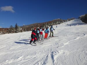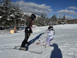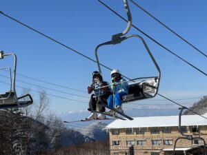 初めてスキーをする子どもたちも、リフトに乗って上手に滑り降りれるようになりました! 初めてのリフトは高くてちょっと怖かったようですが、滑りおわると「もう1回いけるかな?」と。楽しさも感じられたようです⭐︎