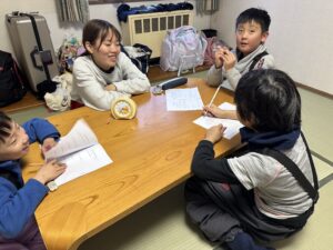 ゲレンデグループタイム。たくさん滑れたこともあって、子どもたちの発言や積極性も増えました!