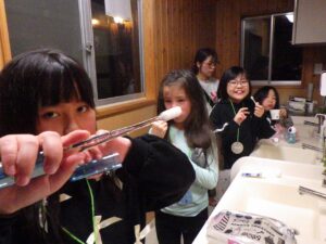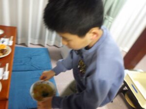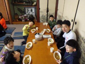 夕食前の食事当番。ぼんどグループが担当してくれました。