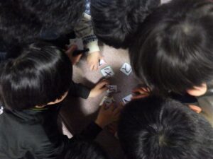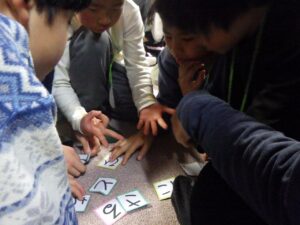 続いては「言葉ポーカー」ランダムに配られたひらがなのカードで、文字数の多い単語を作ったチームの勝ちです。