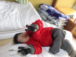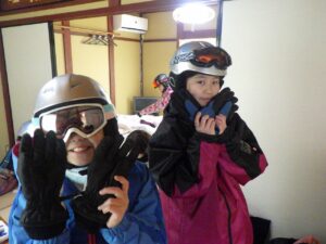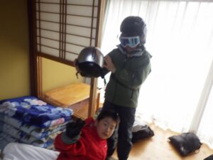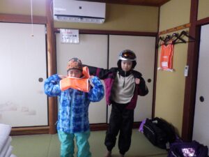 予定通り 民宿に到着し、まずはレンタルブーツのサイズ合わせ。