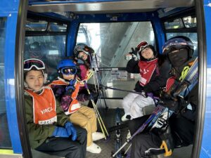 ゴンドラ乗り場に移動しました。スキー板の用意をしていると、”赤い人”と”青い人”がみんなのところへやってきました。