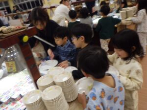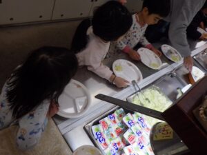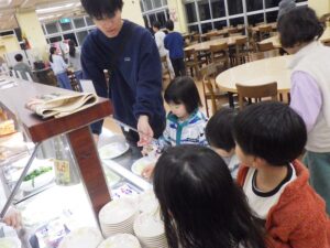 食事はバイキング!おかわりする子もいました。