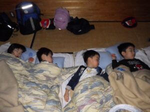 なかなか寝付けない子もいましたが、21時30分には全員が夢の中。明日も楽しく過ごそうね。