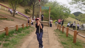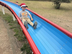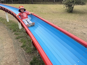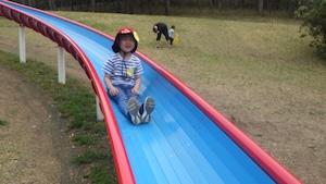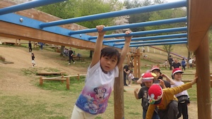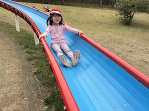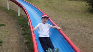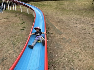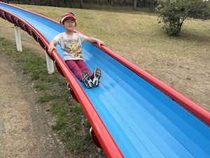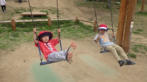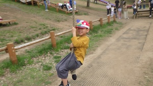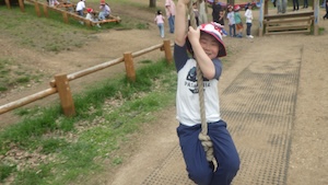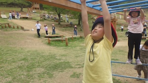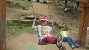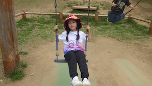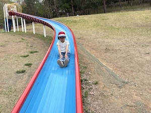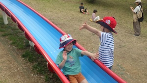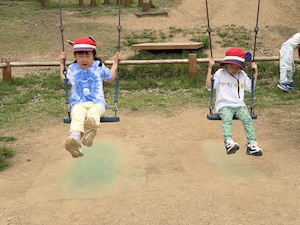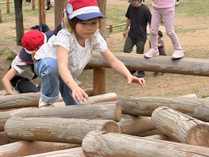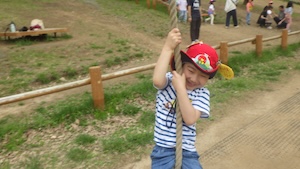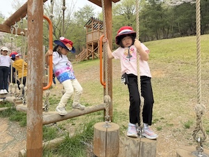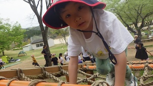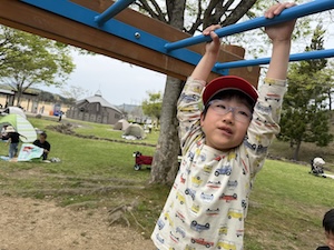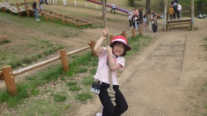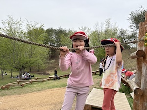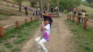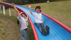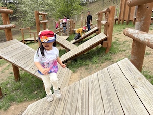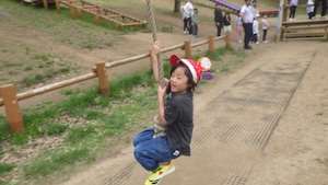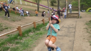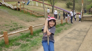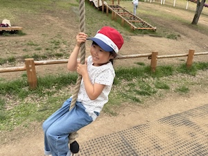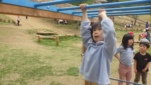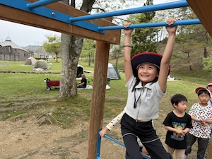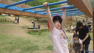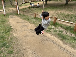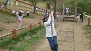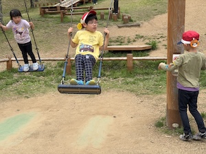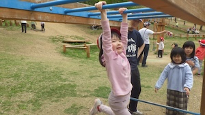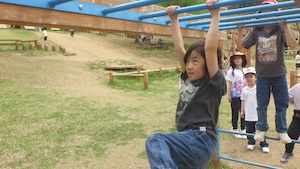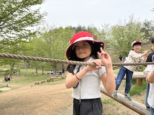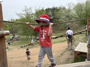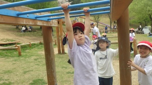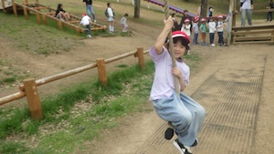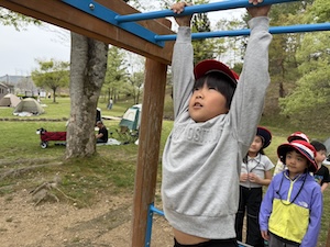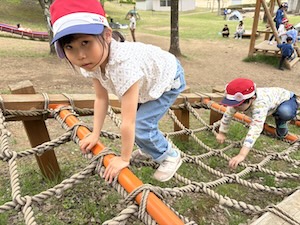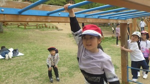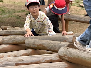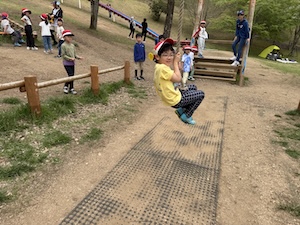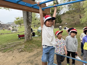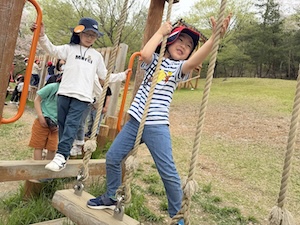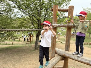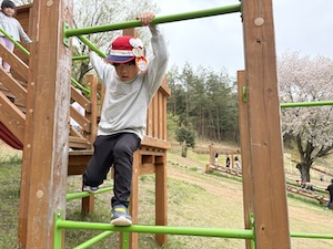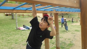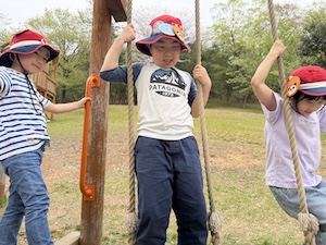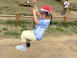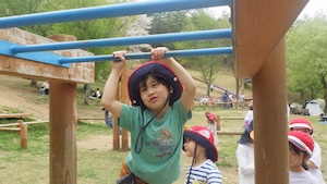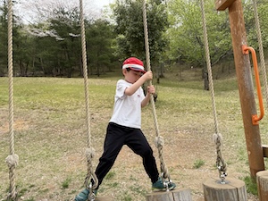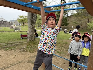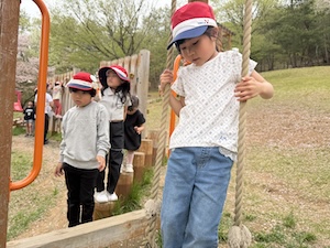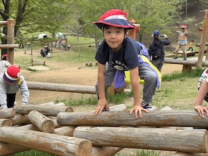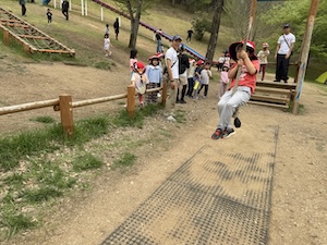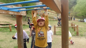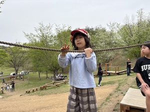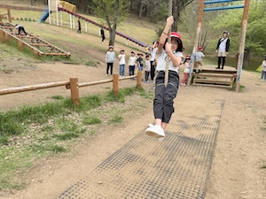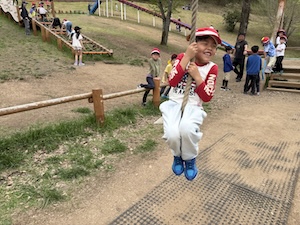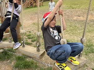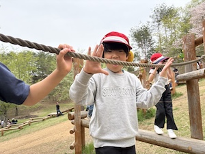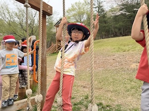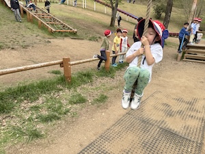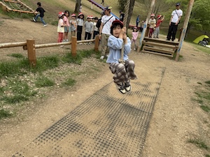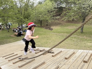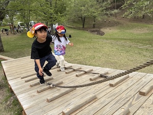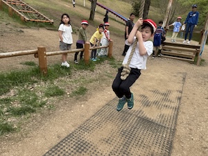 午後はお楽しみのアスレチックに挑戦です。ぶら下がったり、登ったり、滑ったりといろんなアスレチックで遊びました。