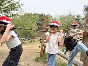 今年度もフィールドチャレンジャーの活動が始まりました。今日はみんなでアスレチックに挑戦しましょう!