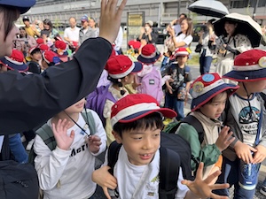 おうちの人に見送られ出発!