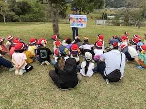 公園の中で注意することを、リーダーが劇で教えてくれました。