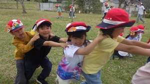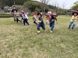 その後はみんなで遊ぶ時間。グループ対抗のゲームをしました。