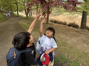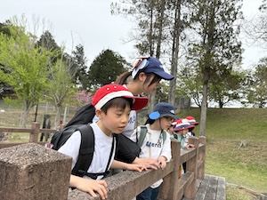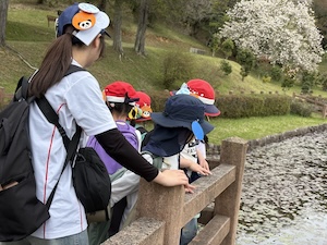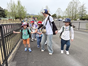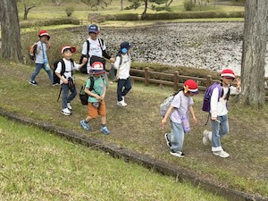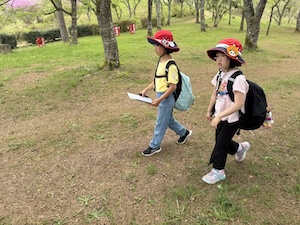 掛け声かけて公園たんけんに出発!