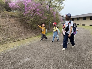 最後に食育の時間「もぐもぐチャレンジャー」です。今日は春の山菜について教えてもらいました。公園の中にもあるかもしれないね。探してみよう!