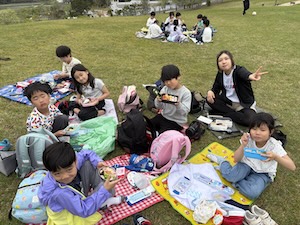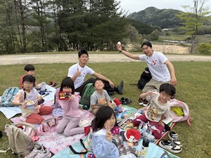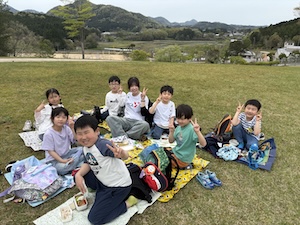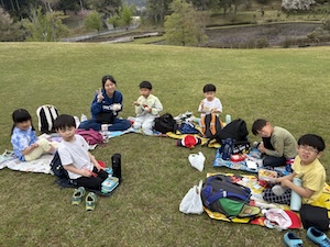 探検を終えて、見晴らしの良い丘の上でお昼ごはんです。