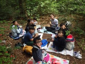 続いて環境について学ぶ時間「ネイチャーエキスパート」です。自然の中で活動するために大切な考え方「Leave No Trace」について学びました。