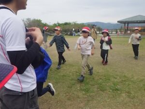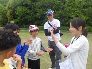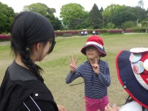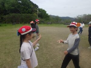 その後はみんなで遊ぶ時間にしました。グループの仲間と協力するゲームでグループの仲も深まりました。